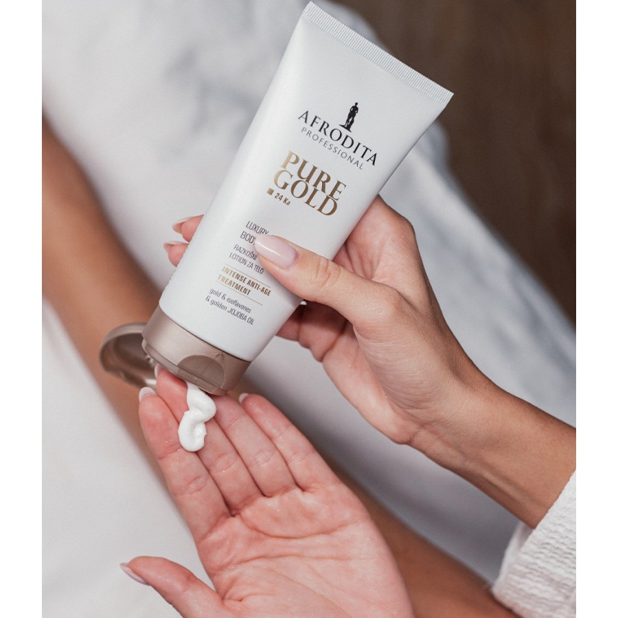 Svilenkasta, brzoupijajuća tekstura s česticama čistog zlata za ekskluzivnu anti-age njegu tijela. Obogaćena izoflavonima i zlatnim uljem jojobe intenzivno vlaži kožu te potiče sintezu kolagena i elastina. Osigurava optimalno njegovanu, zadivljujuće glatku i znatno čvršću kožu.