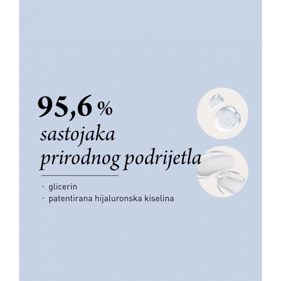 - Sa snagom patentirane hijaluronske kiseline, 100 % prirodnog podrijetla, istovremeno vlaži kožu.