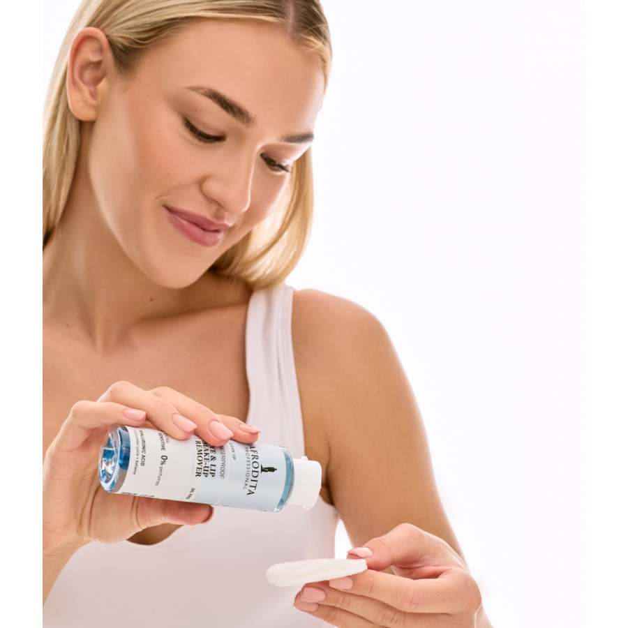 U slučaju intenzivnijeg make-upa vate natopljene odstranjivačem šminke ostavite na očima/usnicama 3 – 5 sekundi kako bi se šminka otopila. Zatim nježno obrišite područje oko očiju / usnice.