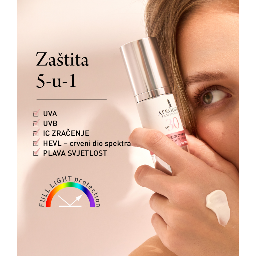 Nadalje, putem zaslona smo svakodnevno izloženi i plavoj svjetlosti koja predstavlja izvor oksidativnog stresa, slabi funkciju barijere te uzrokuje dermalna oštećenja. Zaštitni fluid SPF 30 učinkovito štiti kožu i od takozvane plave svjetlosti.