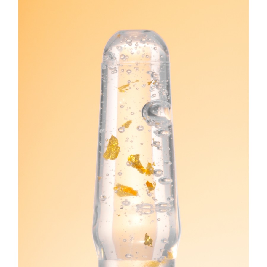 Sastojci: Aqua, Pentylene Glycol, Glycerin, Beta-Glucan, Lecithin, Soy Isoflavones, Panthenol, PEG-40 Hydrogenated; Castor Oil, Gold, Carbomer, Sodium Benzoate, Polysorbate 80, Citric Acid, 1,2-Hexanediol, Caprylyl Glycol, Sodium Hydroxide, CI 77820, CI 77400