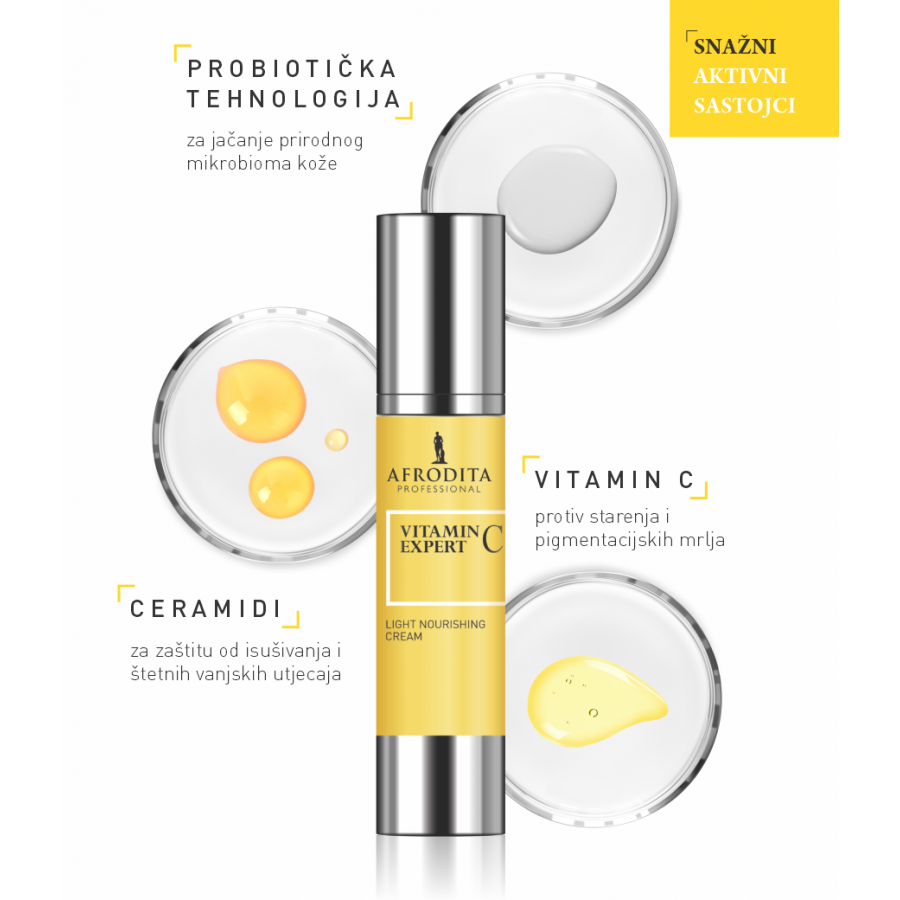 Za razliku od klasičnih hranjivih krema, hranjiva krema VITAMIN C EXPERT na dodir je lagana i maziva, a po učinku ipak nadasve njegujuća.