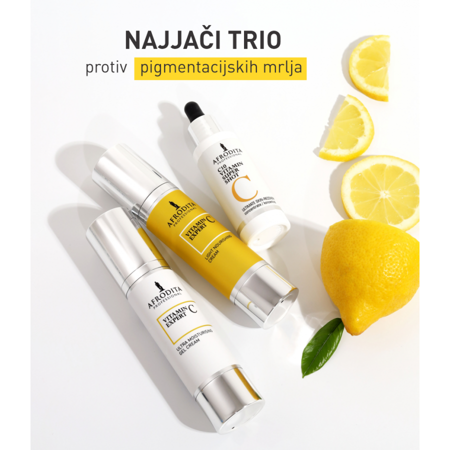 - Za maksimalno iskorištavanje svih pozitivnih učinaka vitamina C u svoju rutinu njege uključite i C10 Vitamin Super Shot. Posebno u slučaju jako izraženih pigmentnih nepravilnosti i dubljih bora. Serum nanesite kao podlogu za kremu.