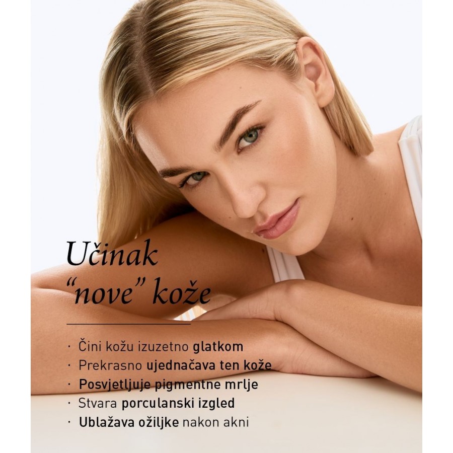 - Uz redovitu uporabu posvjetljuje pigmentne madeže te ublažava reljefne nepravilnosti (ožiljke) koje nastaju kao posljedica liječenja akni.