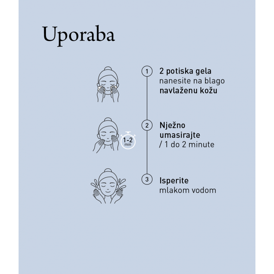 - Gel za čišćenje pogodan je za samostalnu uporabu ili za drugi korak takozvanog dvostrukog čišćenja kože (nakon čišćenja čistačem na uljnoj bazi).
