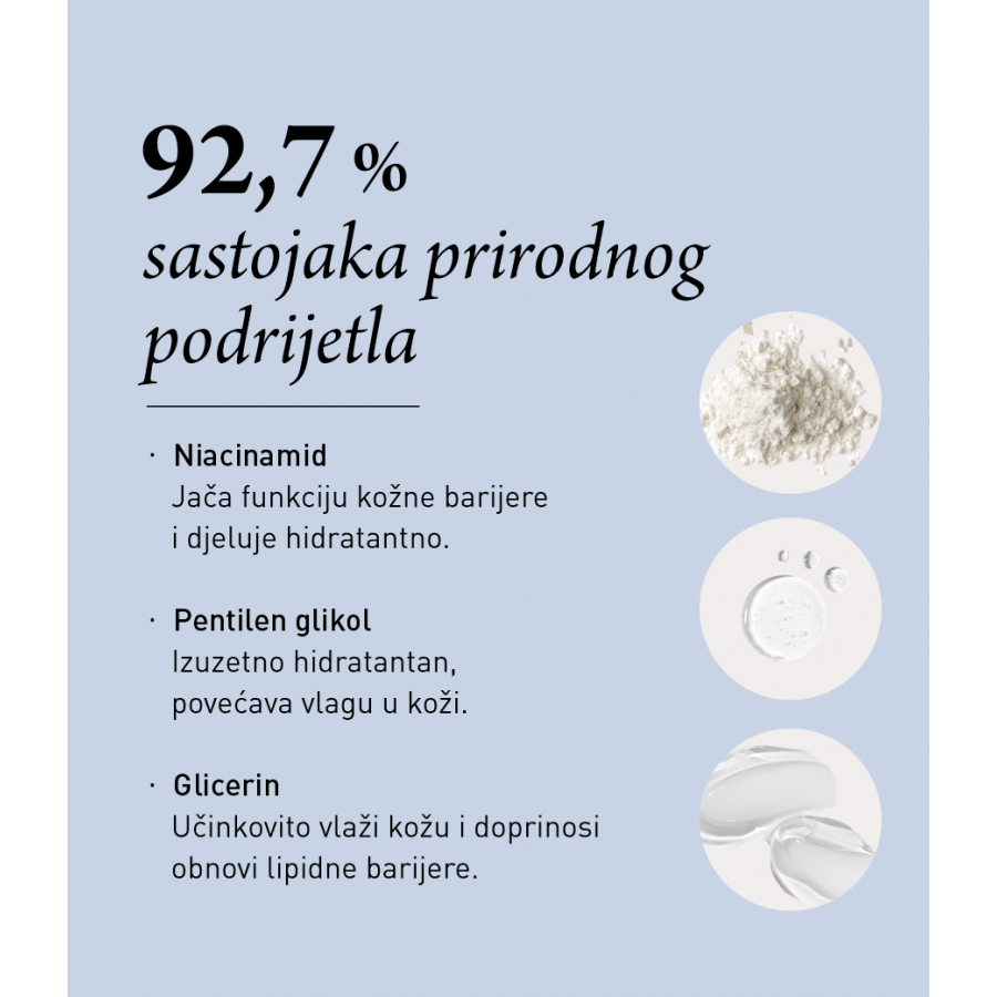 - Ultrahidratantna formula sadrži visoku koncentraciju niacinamida, glicerin i pentilen glikol. Ti izuzetni ovlaživači jačaju prirodnu barijeru kože te pomažu spriječiti isušivanje.