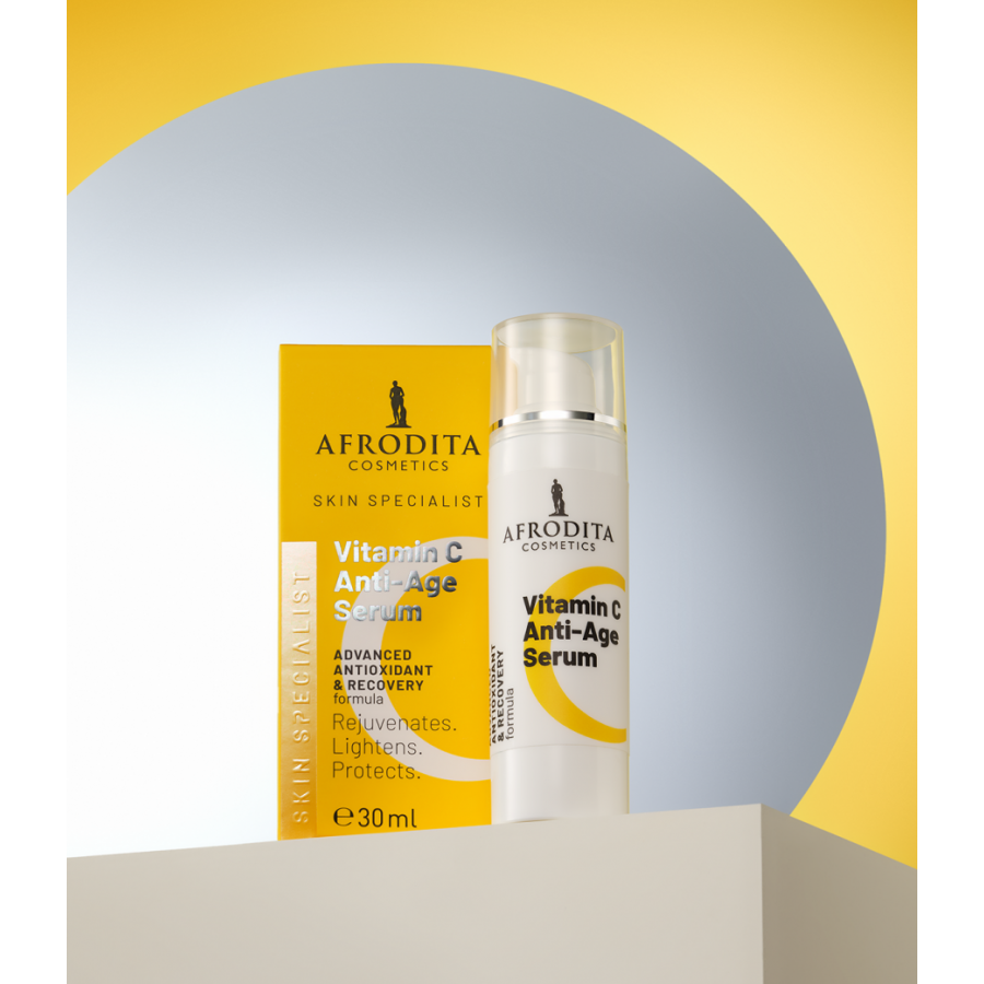 VITAMIN C Anti-Age serum za pomlađivanje, poboljšan ten, jačanje kože i sprječavanje preranog starenja. Njegova napredna formula sa stabiliziranim oblikom vitamina C (Ascorbyl Tetraisopalmitate) potiče sintezu kolagena, poboljšava elastičnost kože i pomaže smanjiti izgled prvih bora. Istodobno djeluje kao snažan antioksidant koji štiti kožu od slobodnih radikala, onečišćenja i UV-induciranog starenja.