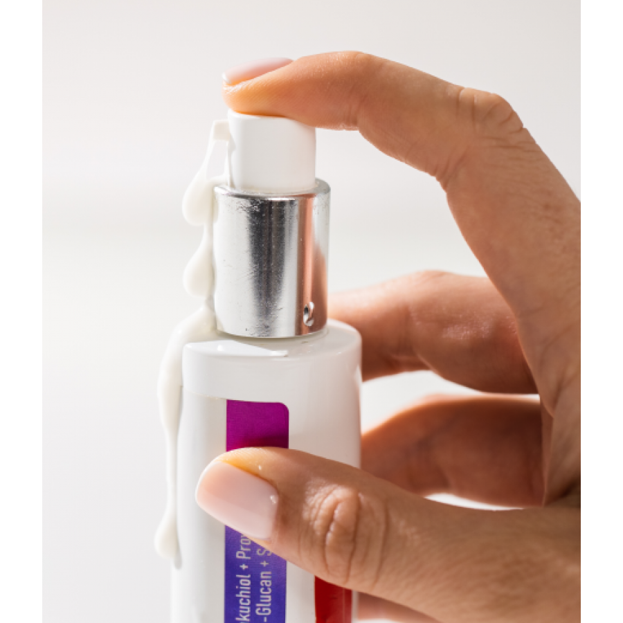 Sastojci: Aqua, Pentylene Glycol, Bakuchiol, Cetearyl Ethylhexanoate, Cetearyl Isononanoate, Dicaprylyl Ether, Ethylhexyl Stearate, Polyglyceryl-6 Laurate, Panthenol, Squalane, Glycerin, Beta-Glucan, 1,2-Hexanediol, Caprylyl Glycol, Helianthus Annuus Seed Oil, Ceramide 3, Ceramide 6 II, Ceramide 1, Phytosphingosine, Cholesterol, Sodium Lauroyl Lactylate, Tocopherol, Ethyl Ferulate, Humulus Lupulus Extract, Sodium Lactate, Sodium PCA, Glycine, Fructose, Urea, Niacinamide, Inositol, Lactic Acid, Xanthan Gum, Carbomer, Polyacrylate Crosspolymer-6, Disodium EDTA, Lauryl Glucoside, Myristyl Glucoside, Phenoxyethanol, Ethylhexylglycerin, Sodium Benzoate, Citric Acid