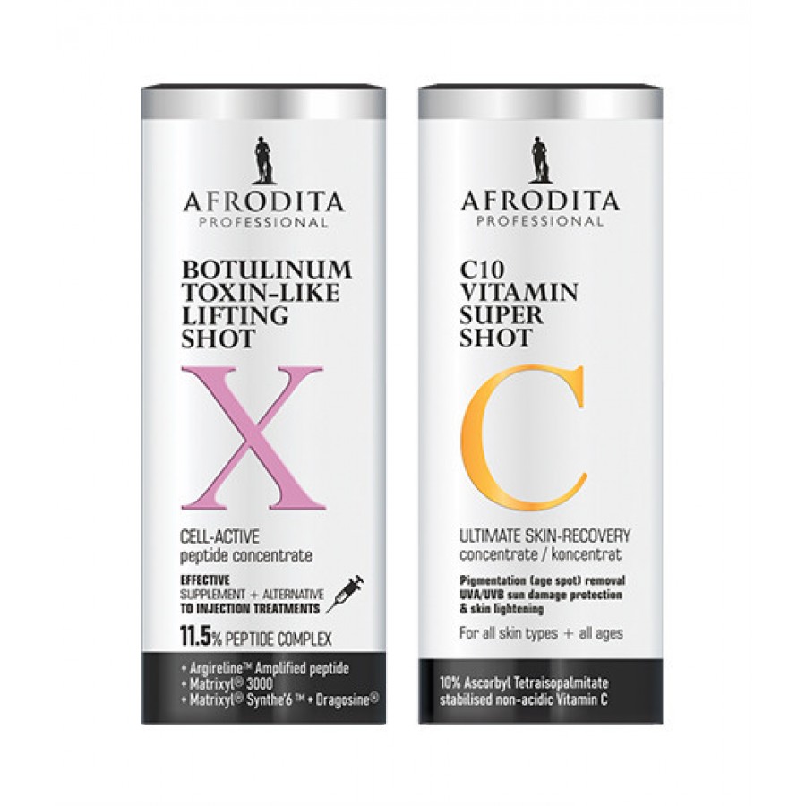 Imamo rješenje za vas: iznimno potentnu kombinaciju 2 najsnažnija ANTI-AGE shota Afrodita Professional za rješavanje problema s borama i pigmentacijom.