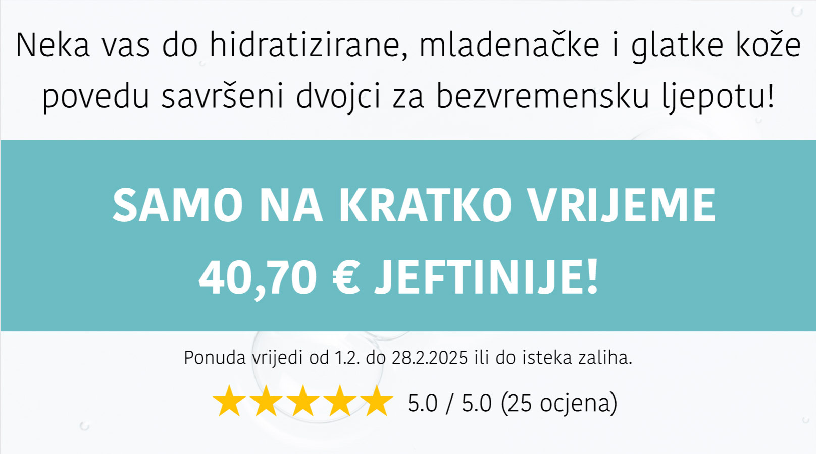 KONCENTRAT je odličan. Inače ne vjerujem u čudesno pomlađivanje kože, ali ove kapljice zaista djeluju. Premda je pakiranje malo, treba mi neko vrijeme da ga potrošim. Dovoljno da na neko vrijeme pomladim svoj izgled. Preporučujem.