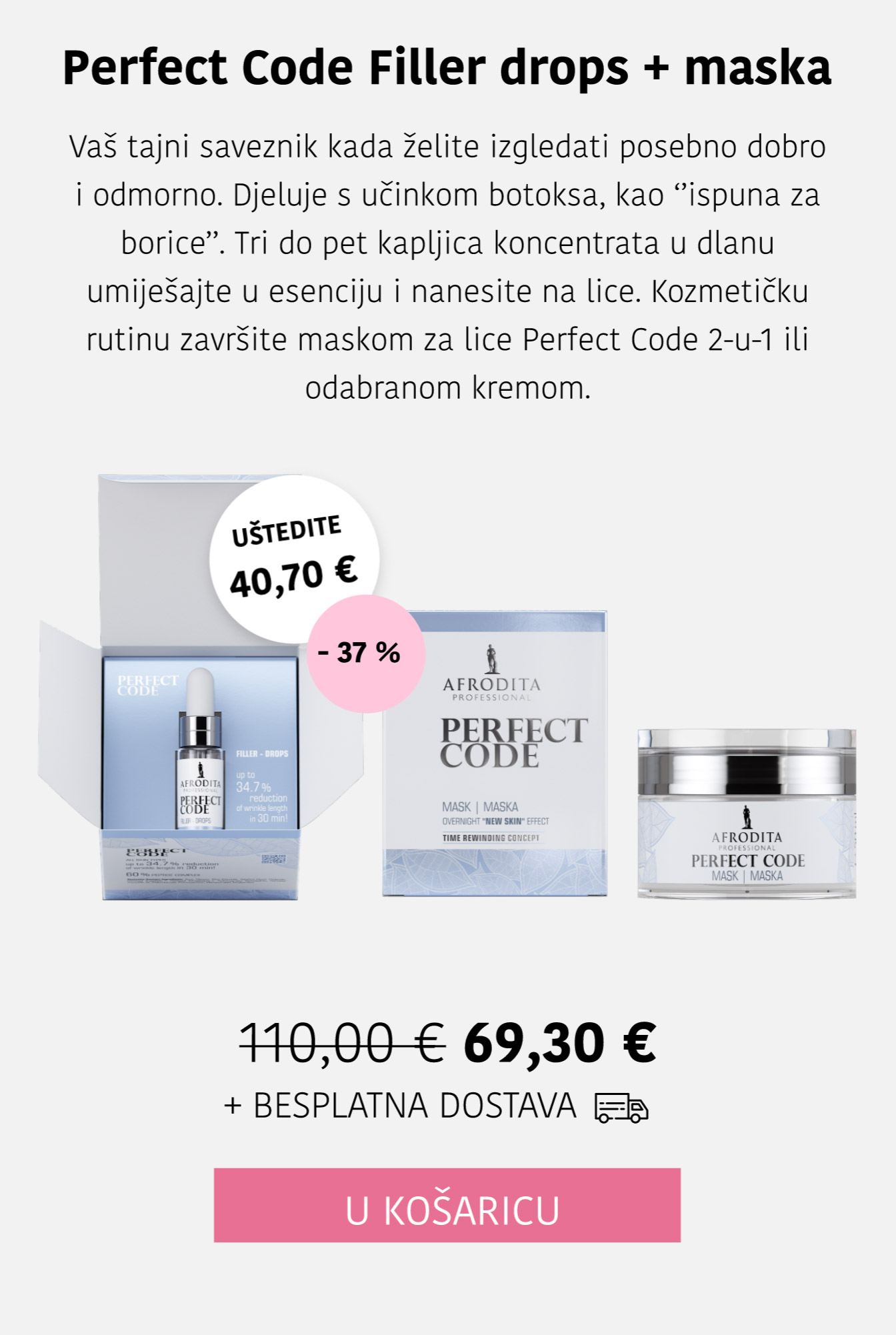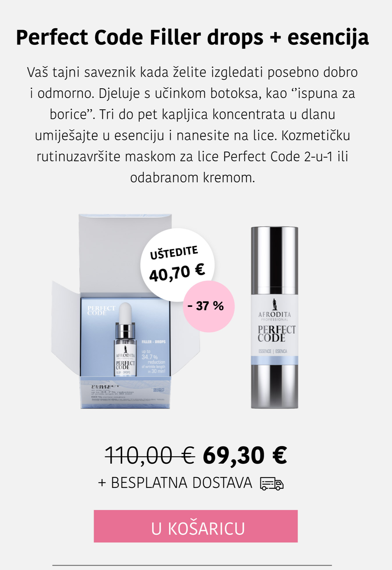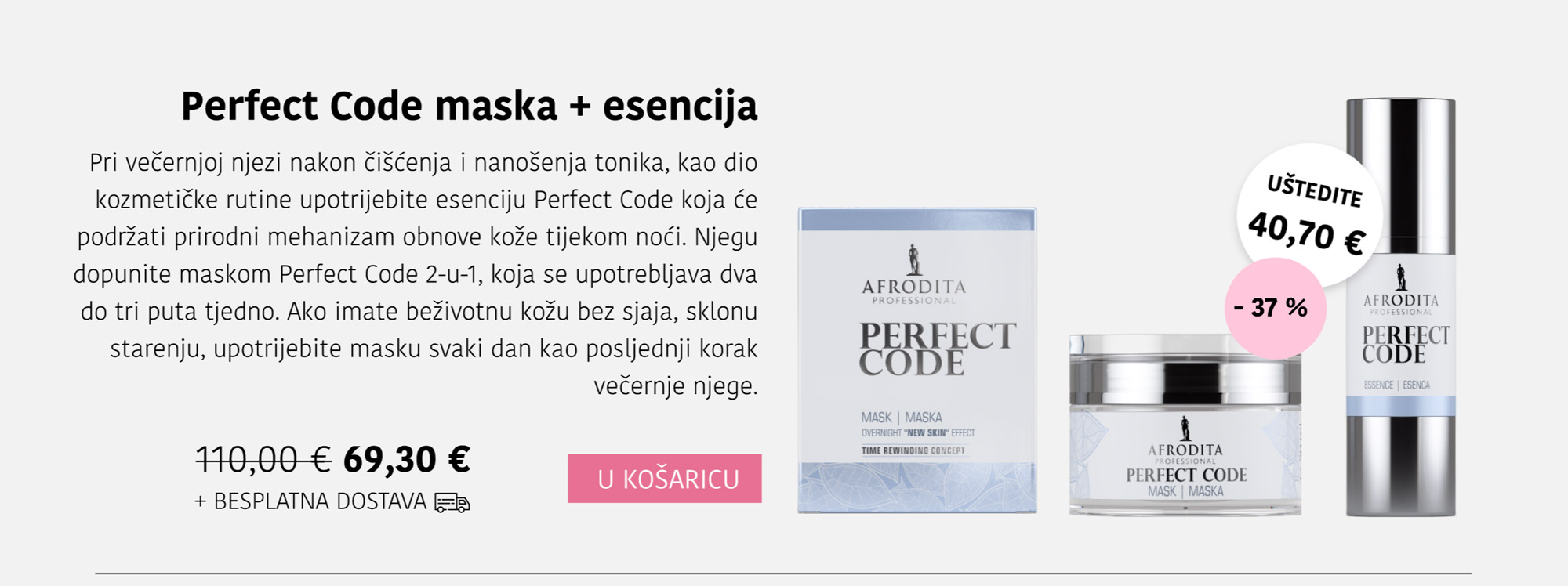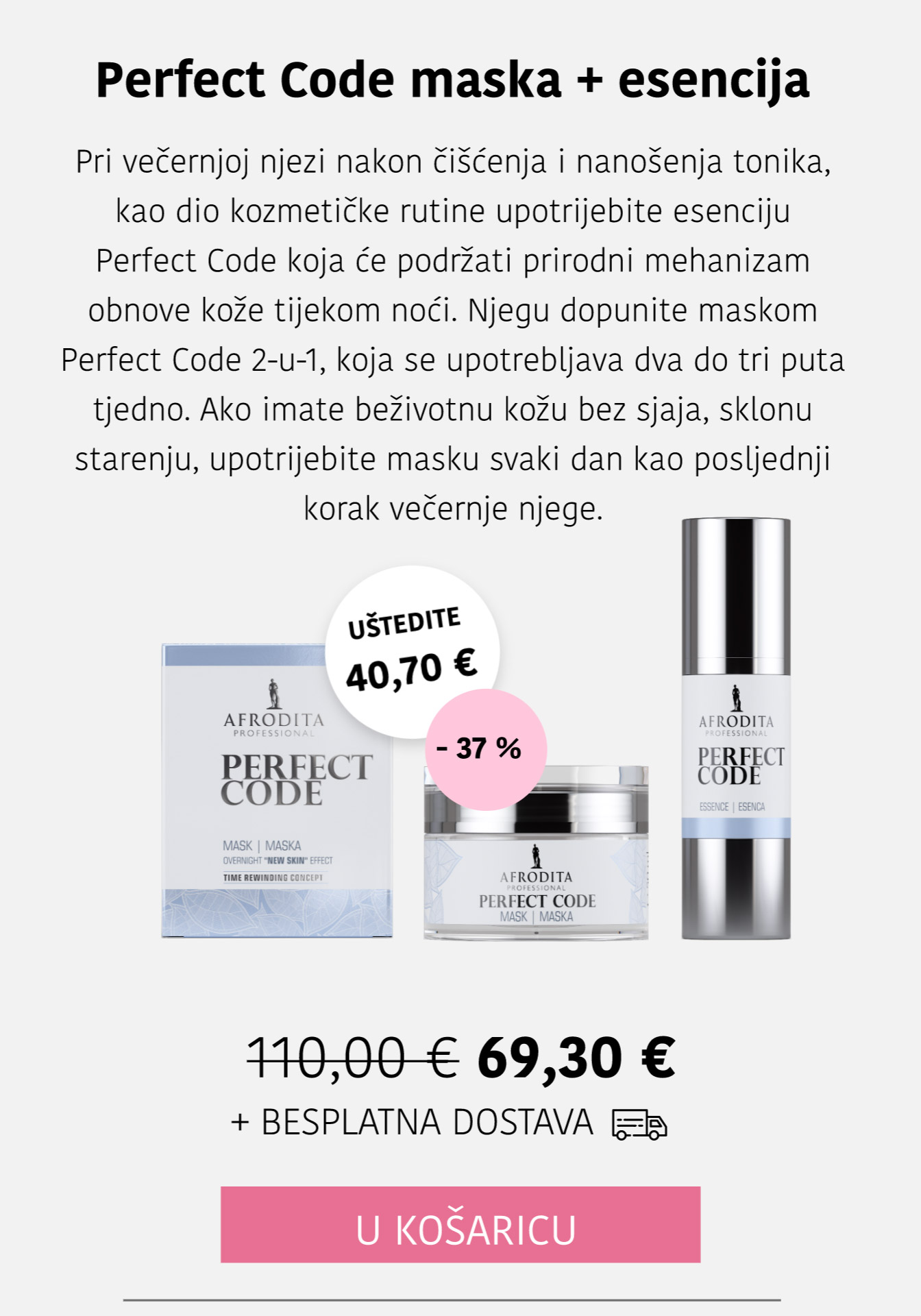 Linija Perfect Code prikladna je za sve starosne skupine jer se fokusira na prevenciju i smanjenje prvih znakova starenja, dok istovremeno pruža dubinsku njegu i zreloj koži.