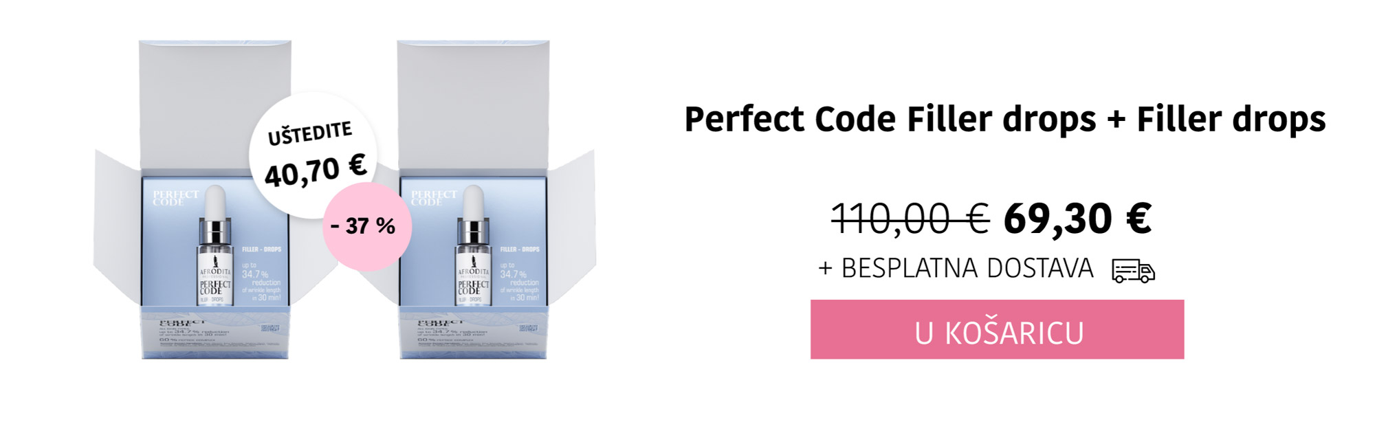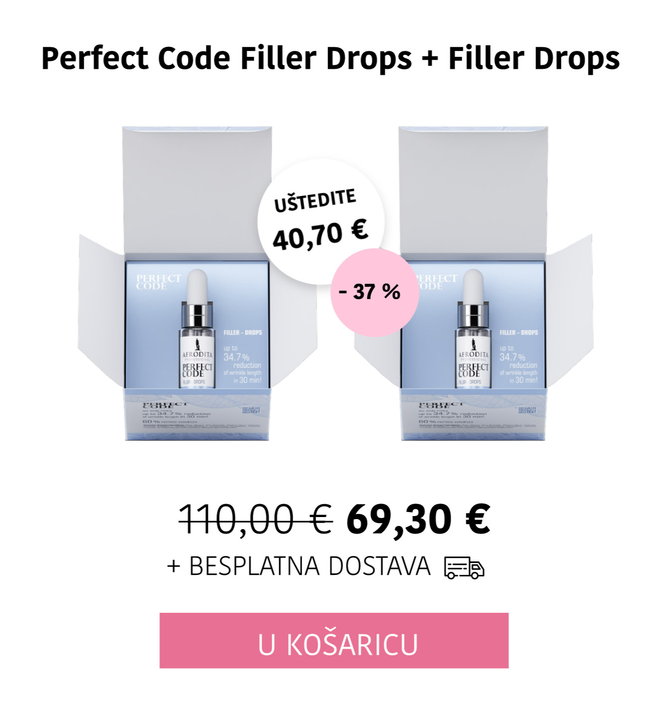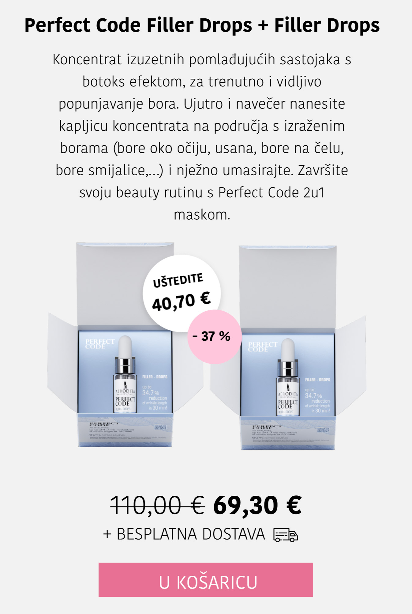 Koncentrat Filler-Drops vidljivo popunjava bore već za 30 minuta, s do 34,7% smanjenjem duljine bora. *in vivo studija na 10 dobrovoljaca nakon 1 nanošenja, 30 minuta kasnije