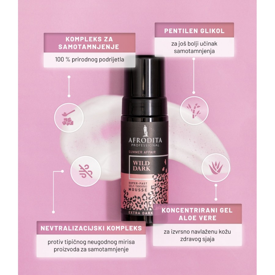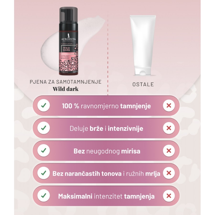 Pjena za samotamnjenje WILD DARK tvojoj će koži za samo nekoliko sati osigurati prekrasan, intenzivno preplanuli izgled: