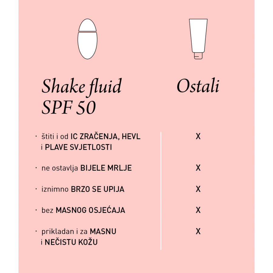 Uz UV filtre, Shake fluid sadrži i niz snažnih antioksidanata, ovlaživača i ublažavajućih sastojaka koji koži uz svestranu zaštitu osiguravaju i intenzivnu njegu:
