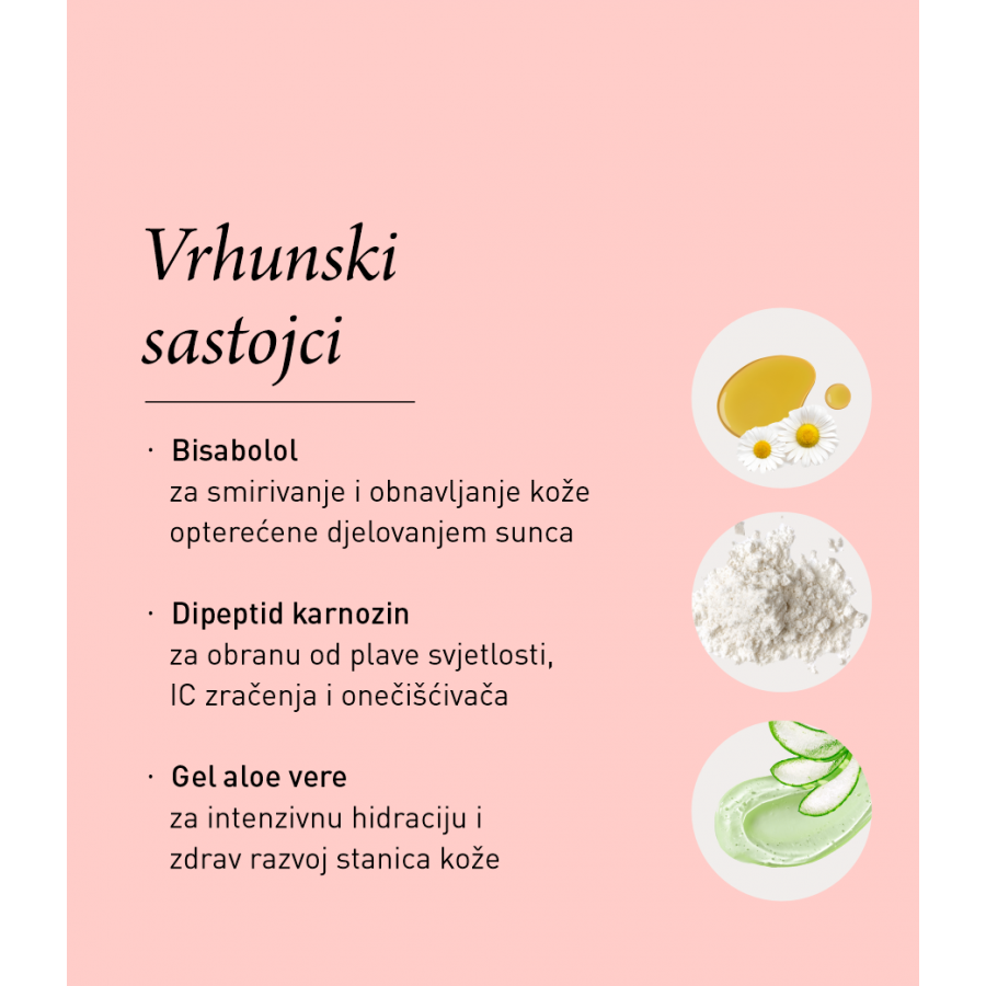 - DIPEPTID KARNOZIN: za obranu kože od onečišćivača, plave svjetlosti i IC zračenja