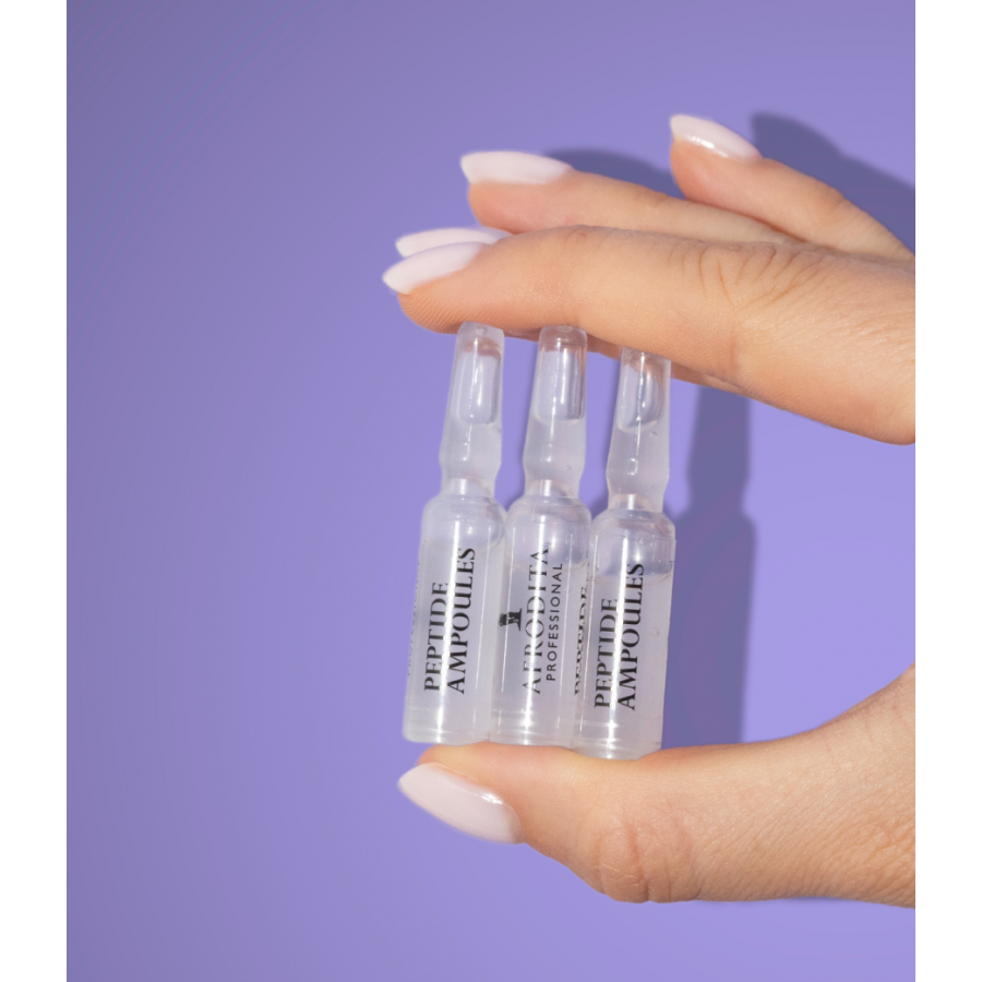Shake the ampoule immediately before use and apply to the cleansed and toned skin of the face, neck and décolletage.  Rub into the skin morning and evening (one ampoule is enough for two applications) and complete the treatment by applying your favourite 3 PEPTIDES care cream or any other Afrodita Professional cream suitable for the type, age and current condition of your skin.