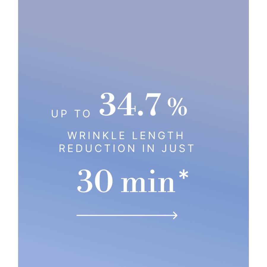 - reduces wrinkle length by up to 34.7% in just 30 minutes*