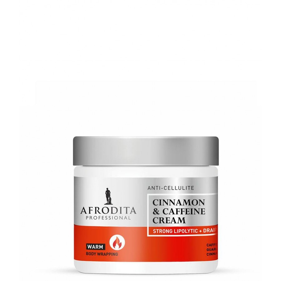 The Cinnamon & Caffeine anti-cellulite body wrapping cream with cinnamon essential oil and caffeine boosts fat breakdown by stimulating the enzymes involved in the mobilisation of saturated fatty acids in adipose tissue. Stimulates and accelerates the elimination of toxins from subcutaneous tissue and is proven to reduce body circumference. A warm sensation, tingling and slight redness are normal side effects and disappear in time.
