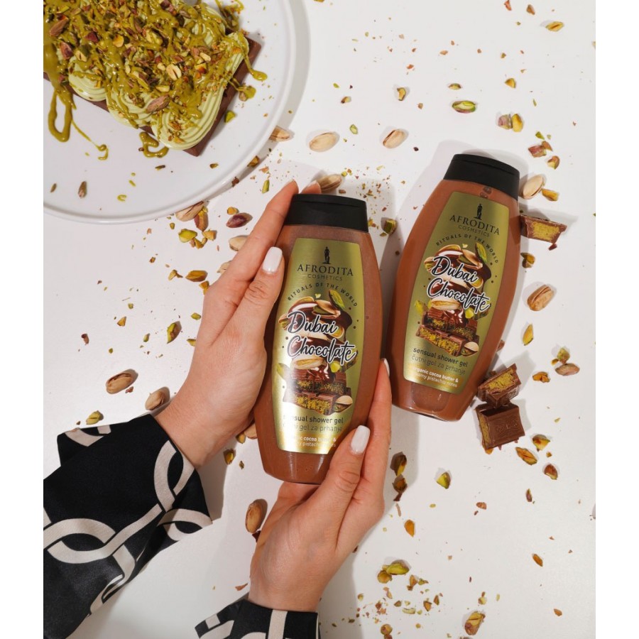 Indulge without guilt. Experience the universal obsession: DUBAI CHOCOLATE! This irresistibly aromatic, rich, and full-bodied fragrance can now grace your bathroom. A sumptuous skincare experience that will take you to a world of glamour and irresistible sweetness.