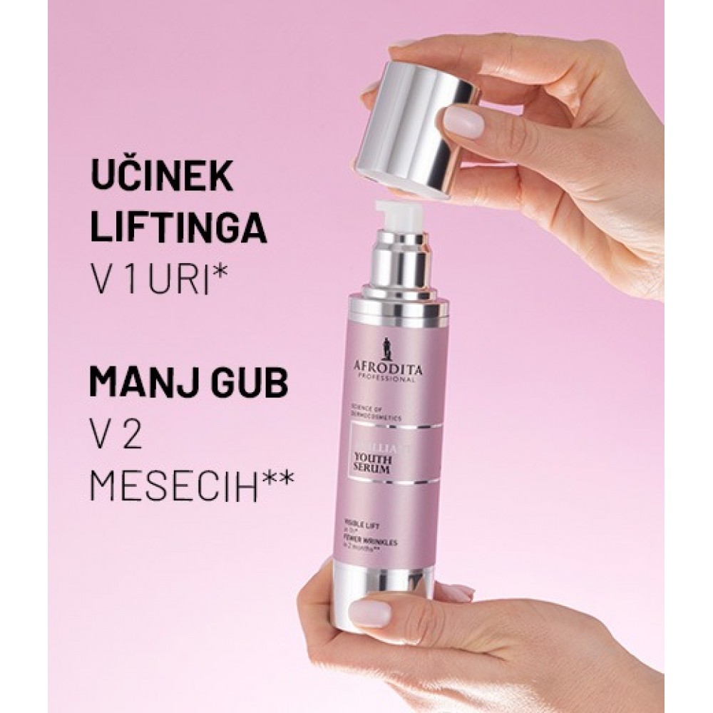 Napredna dermo-kozmetična formula zagotavlja takojšnji učinek liftinga, dolgoročno pa kožo pomladi od znotraj navzven- intenzivira proces obnove kožnih celic ter znatno poveča sintezo kolagena in hialuronske kisline.