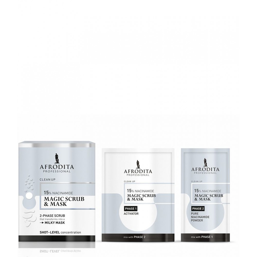 Med mešanjem FAZE 1 in FAZE 2 nastane edinstvena tekstura z abrazivnim učinkom – zrnca niacinamida najprej delujejo kot mehanski piling, nato se pa ob nanosu tonika na koži prične sproščati biološka aktivnost niacinamida, ki deluje: