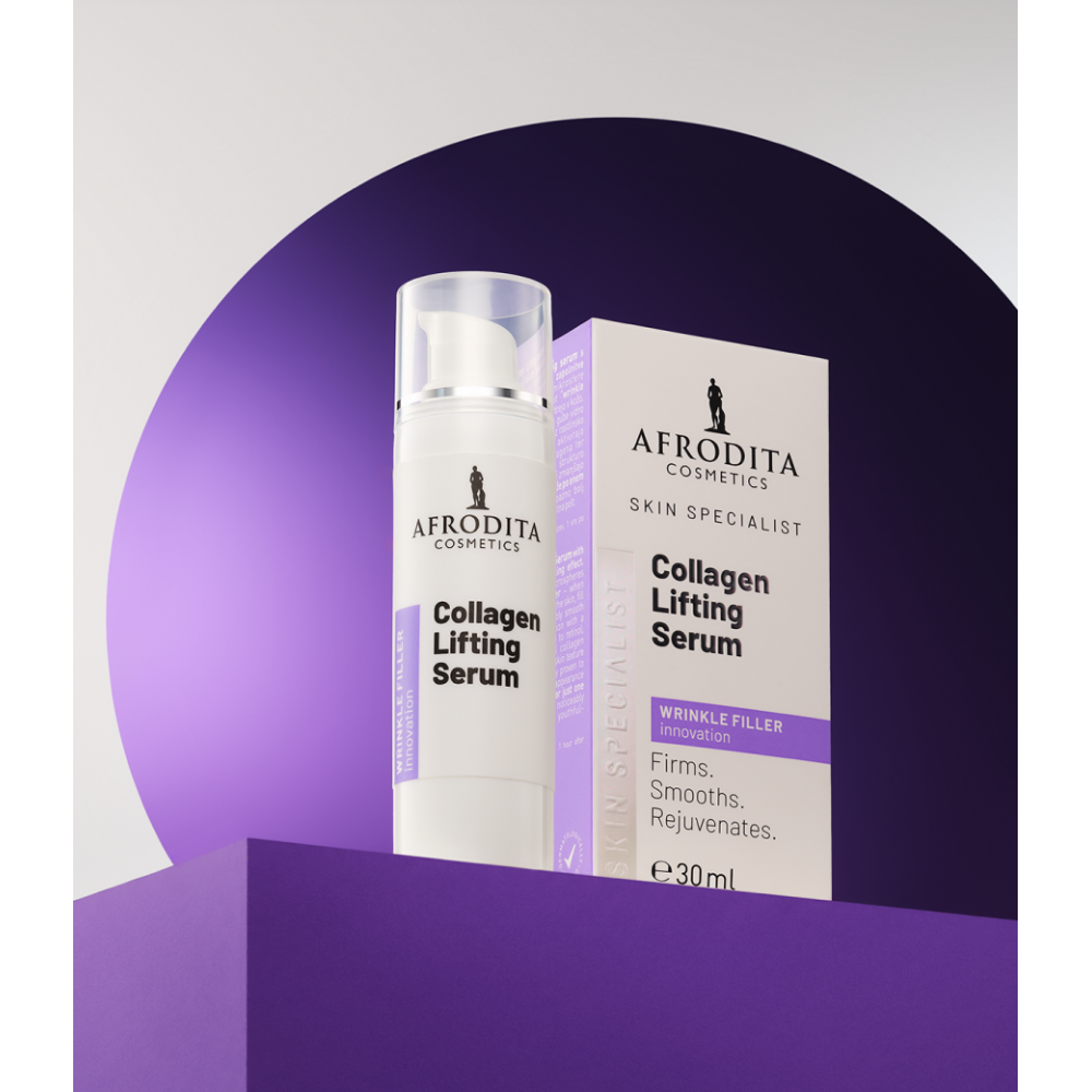 COLLAGEN LIFTING serum je ciljno razvit specialist za hitro in vidno zmanjšanje gub ter izboljšanje strukture kože. Patentirane kolagenske mikrosfere delujejo kot inteligentni polnilci gub: ob nanosu prodrejo v povrhnjico, kjer absorbirajo vlago, povečajo svoj volumen tako mehansko zapolnijo gube od znotraj navzven.
