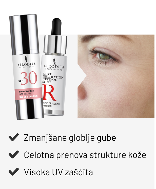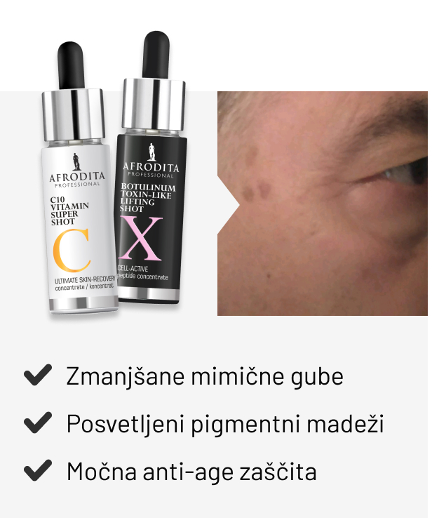 Za vas imamo rešitev: izjemno potentno kombinacijo 2 najmočnejših ANTI-AGE shotov Afrodita Professional za reševanje problematike gub in pigmentacije.