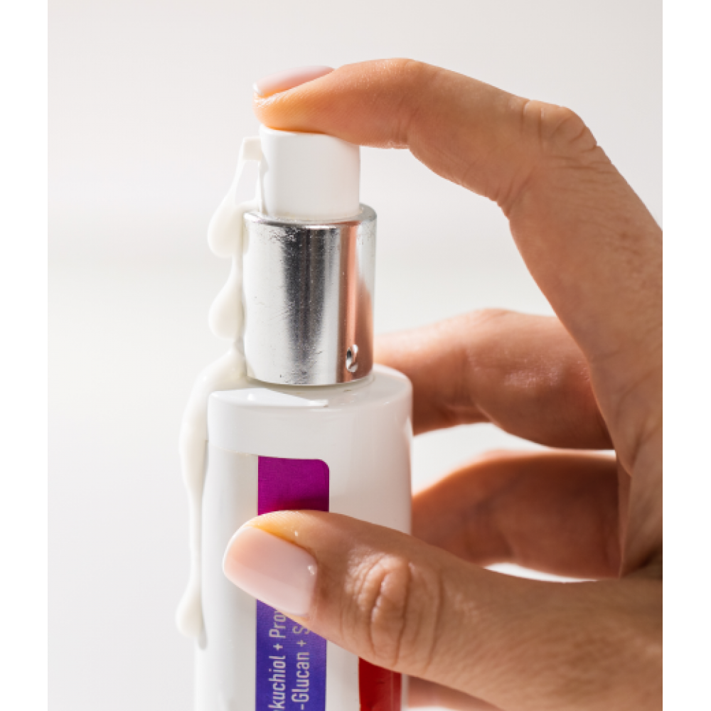 Sestavine: Aqua, Pentylene Glycol, Bakuchiol, Cetearyl Ethylhexanoate, Cetearyl Isononanoate, Dicaprylyl Ether, Ethylhexyl Stearate, Polyglyceryl-6 Laurate, Panthenol, Squalane, Glycerin, Beta-Glucan, 1,2-Hexanediol, Caprylyl Glycol, Helianthus Annuus Seed Oil, Ceramide 3, Ceramide 6 II, Ceramide 1, Phytosphingosine, Cholesterol, Sodium Lauroyl Lactylate, Tocopherol, Ethyl Ferulate, Humulus Lupulus Extract, Sodium Lactate, Sodium PCA, Glycine, Fructose, Urea, Niacinamide, Inositol, Lactic Acid, Xanthan Gum, Carbomer, Polyacrylate Crosspolymer-6, Disodium EDTA, Lauryl Glucoside, Myristyl Glucoside, Phenoxyethanol, Ethylhexylglycerin, Sodium Benzoate, Citric Acid